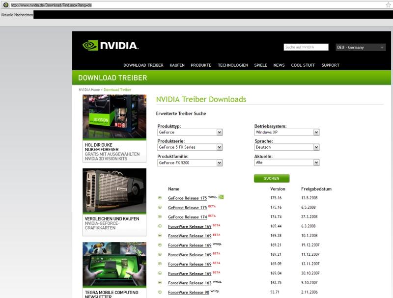 wetflannel hat geschrieben:Und wegen der Grafikkarte: Den Treiber von der Seite, hab ich bereits installiert. Die Installationsdatei befindet sich noch auf dem Rechner.